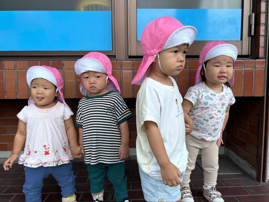 夏の暑さが少しずつ和らぎ、朝夕には涼しい風を感じられるようになりました。涼しくなってきたので散歩にも行けるようになり、友達と手を繋ぐ練習をしながら楽しむぺんぎん組の子ども達です。