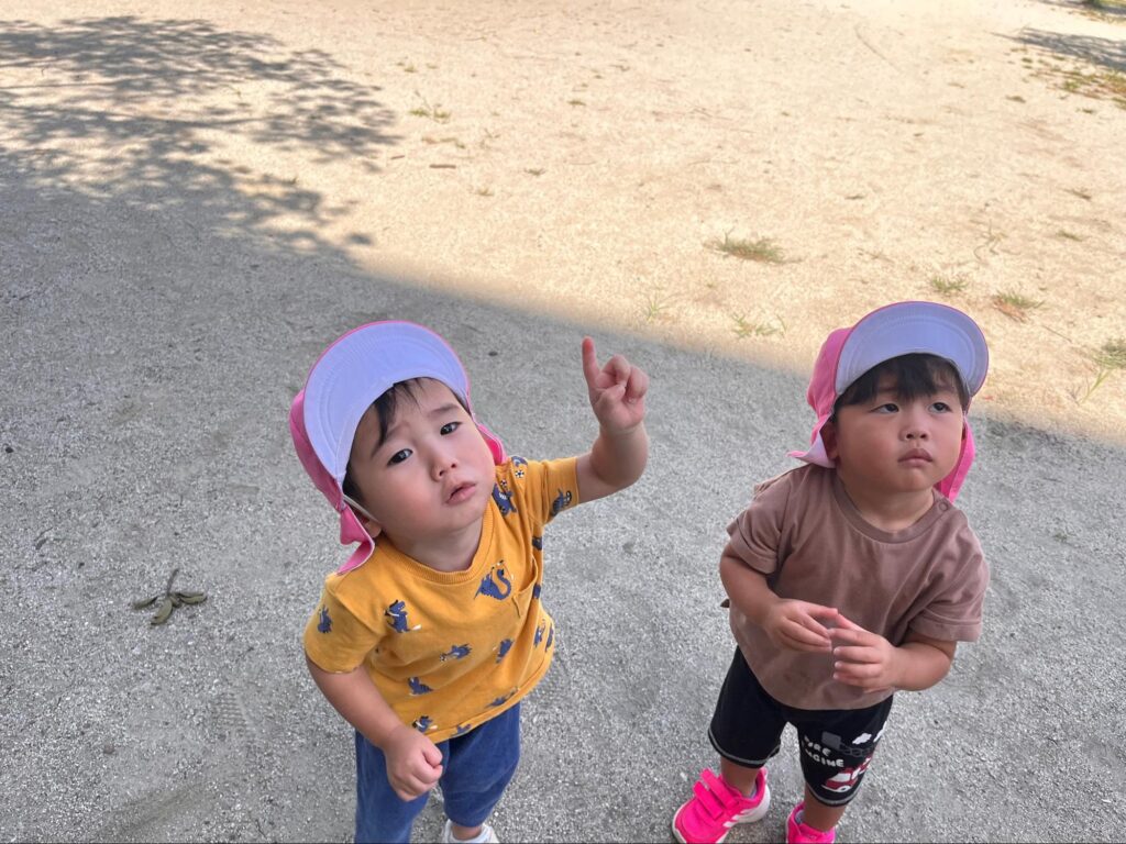 公園では空に虹を見つけ、眩しそうにしながらも興味津々で見ていた子ども達。「赤色あったー!」と見つけた色を教えてくれました🌈