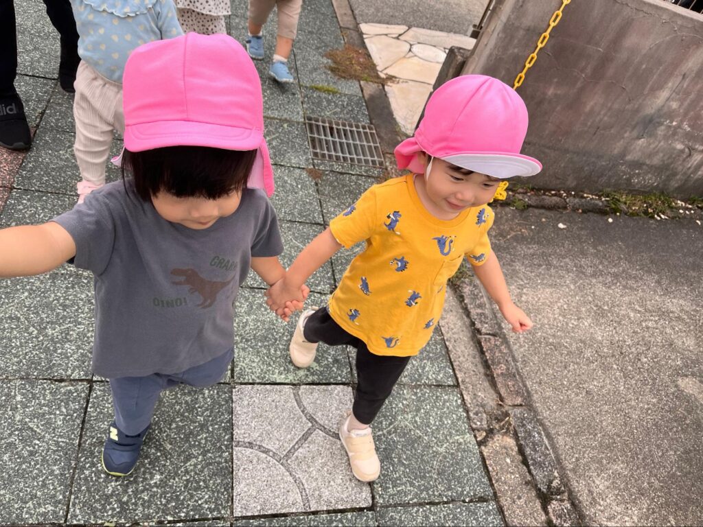 先生とだけでなく、お友だちと手を繋いで歩けるようになった子もいて、日々成長を感じています!