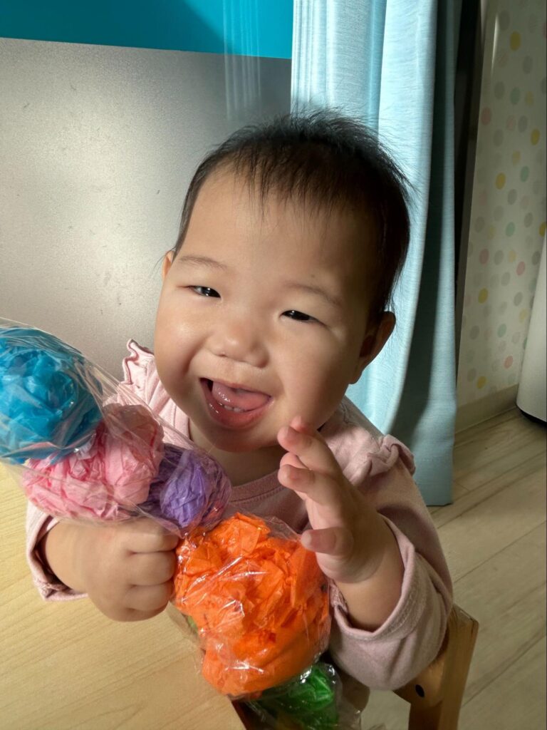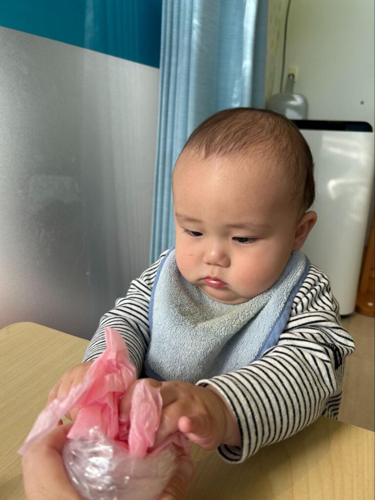 ぐしゃぐしゃに丸めようとする子、ビリビリと破って楽しむ子、紙が手に付く感触を不思議そうに楽しみ机をバンバン叩く子…笑