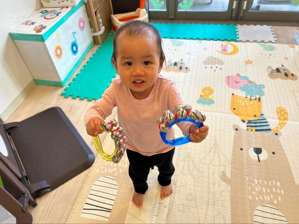 かめ組さんでは、鈴で楽器遊びを行いました。
