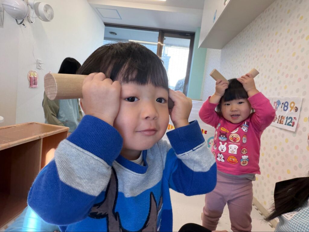 2月の節分の話をすると、なんと積み木で鬼の角を表現し「おに〜」と変身する子ども達。