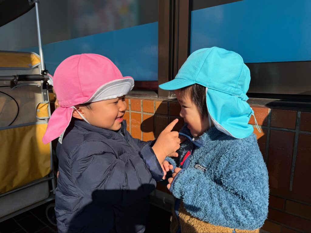 寒さが一段と厳しい2月ですが、頬を赤くしながら戸外遊びを楽しんだり、保育者と一緒に体を動かしたりして、毎日賑やかにです。