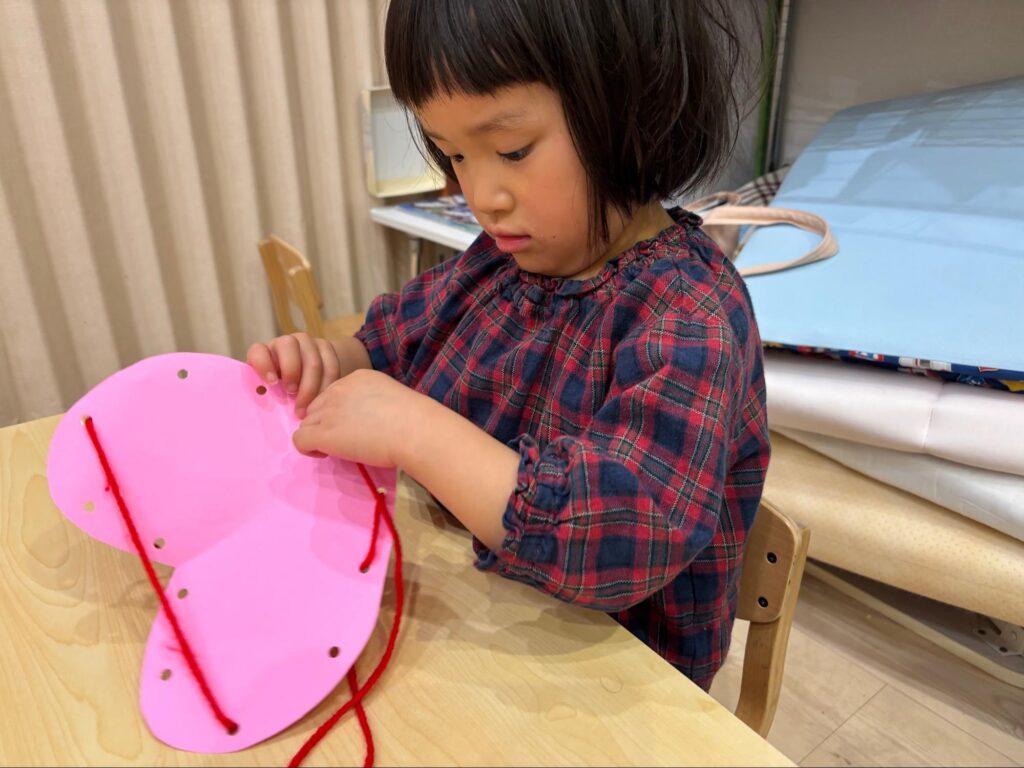 普段から楽しんでいる遊びということもあり、スムーズに通していく子どもたち?真剣な表情で取り組む姿からこの一年で集中力や手先の器用さの成長を感じました。