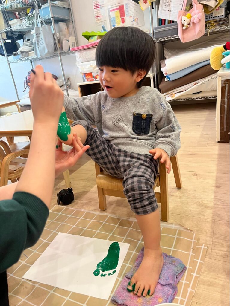 今月のぺんぎん組さんは、製作で足型と手形を取りました!