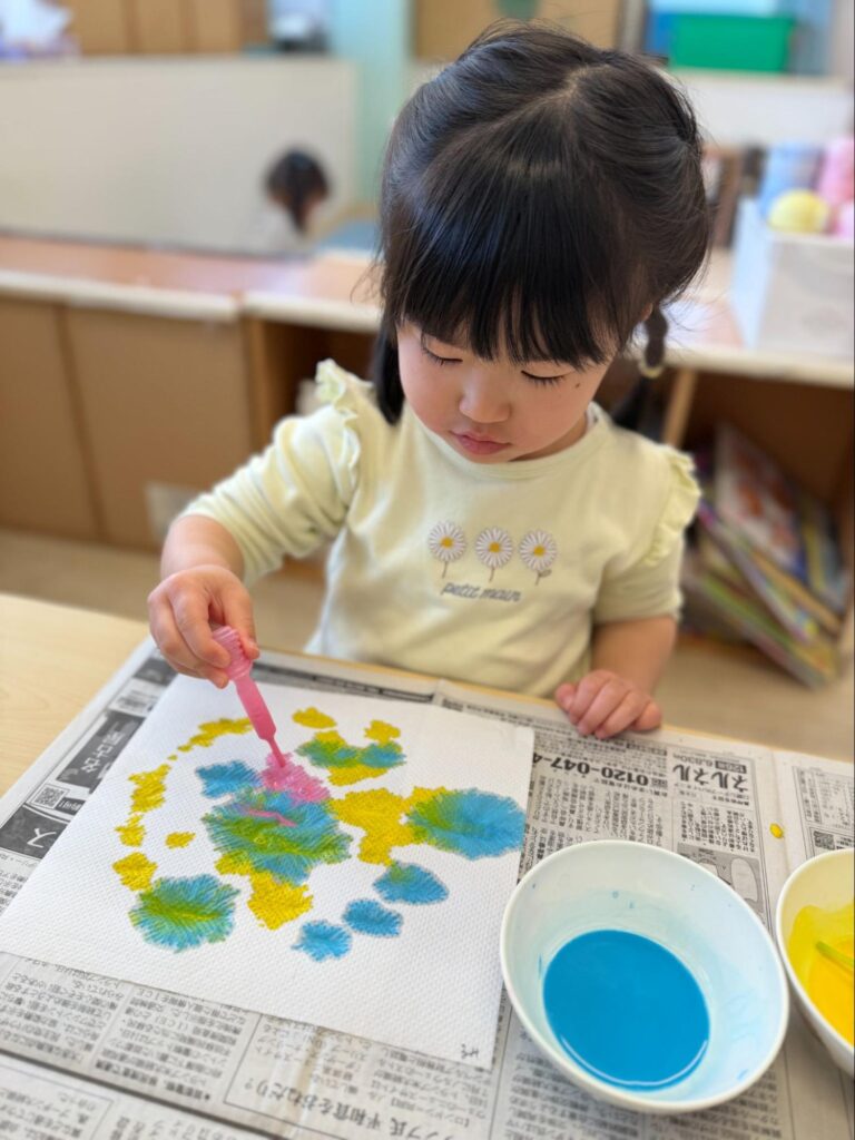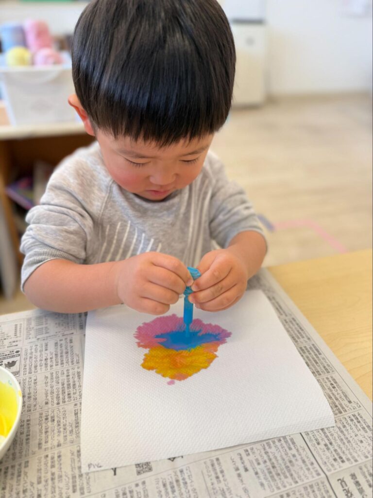 滲んでいく姿を見て、「うわー!きれい!」と嬉しそうに目をキラキラさせながらおしゃべりしていました。
