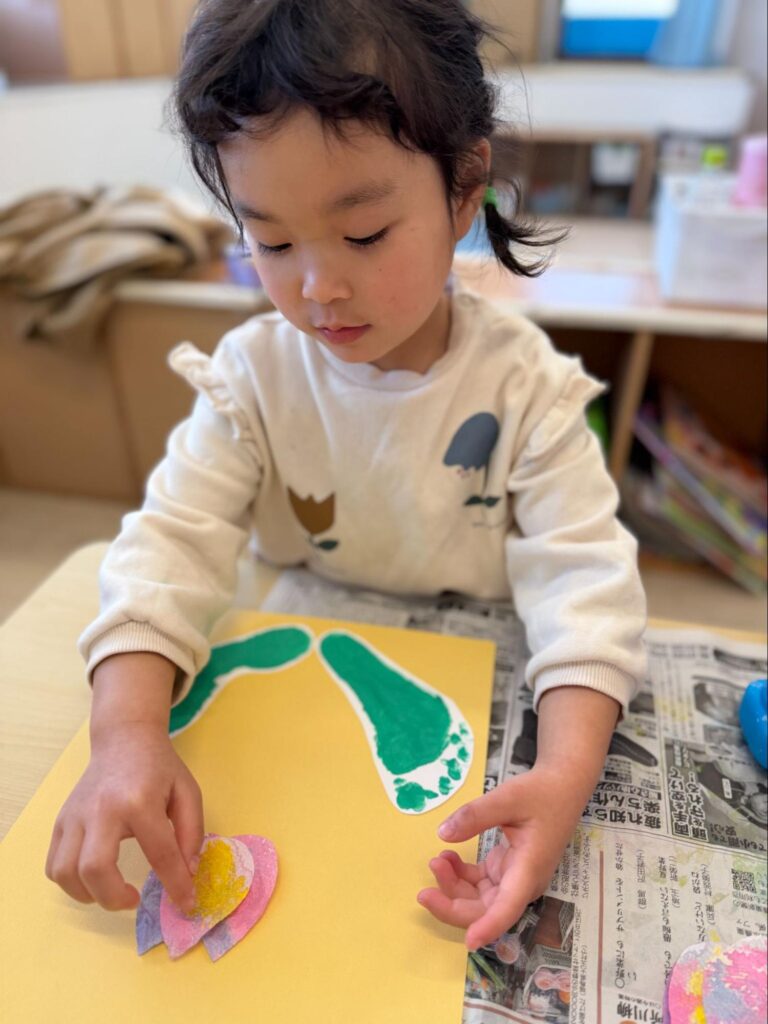 完成したチューリップを見ると、「これ〇〇ちゃんつくったやつー!」と嬉しそうにしていました♡