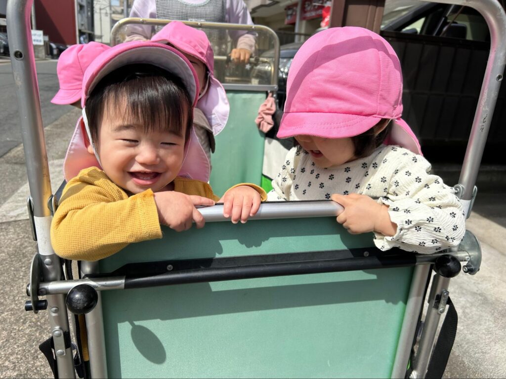 ぺんぎん組さんは戸外遊びが大好き!今月は沢山お外に出かけました。中でも車が好きな子が多いので、車がよく見える道路に行って道路鑑賞もしました♪